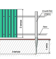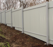 Монтаж одной секции ограждения с зашивкой профлистом |